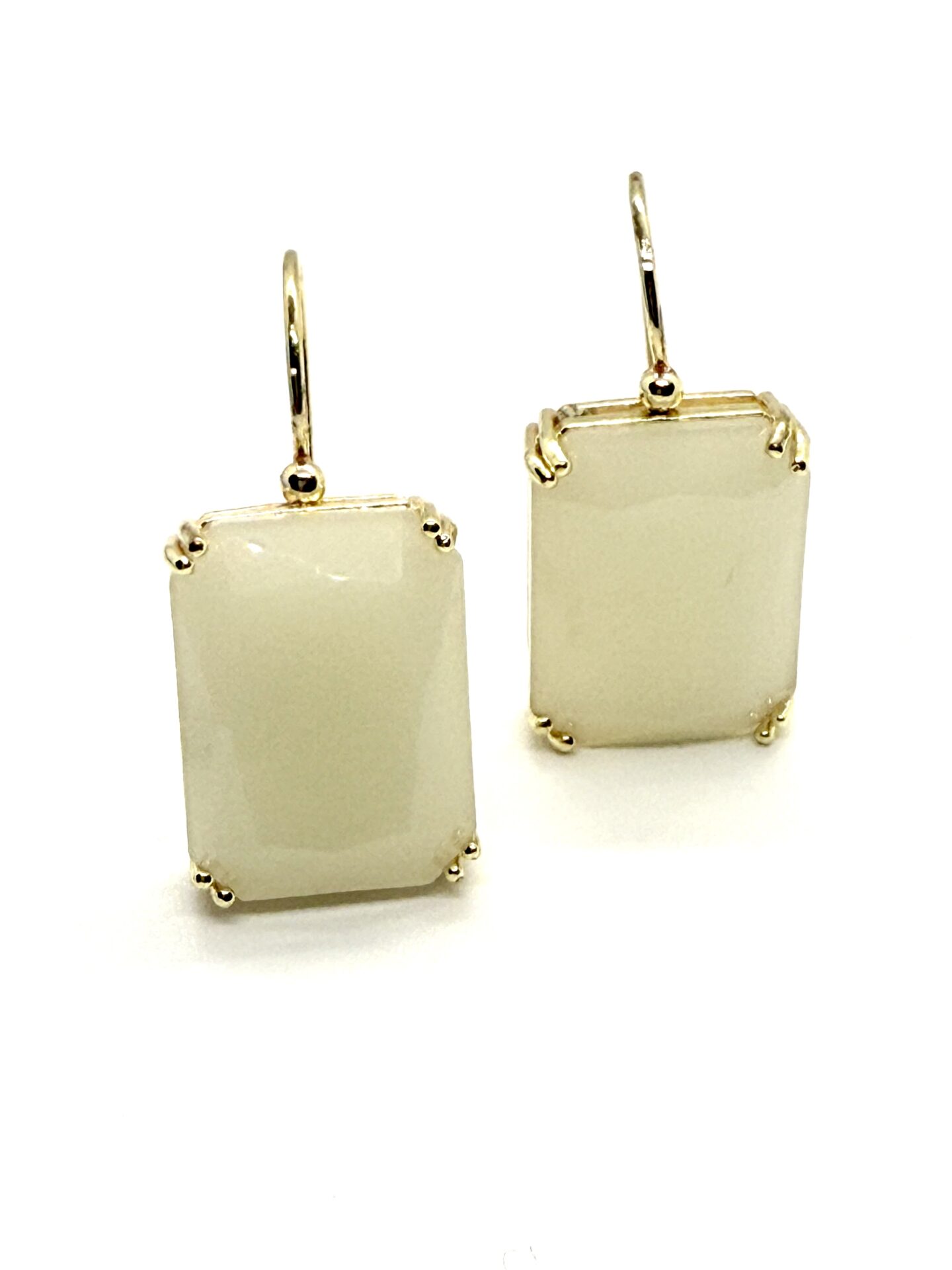 Featuring large faceted crystal drops, these earrings showcase a rectangular crystal suspended from fixed gold-plated hooks, embodying refined sophisticationMetal